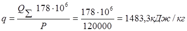 | 3 | Удельный расход тепла | 1483,3 кДж/кг |