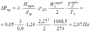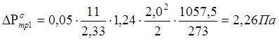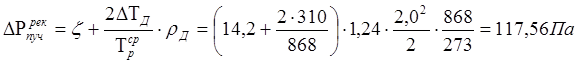 При этом же сечении борова, что и до рекуператора, потери на трение составляют: