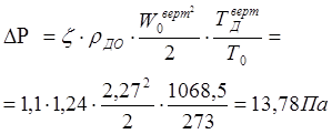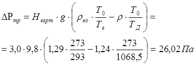 Общие потери давления при движении продуктов сгорания от рабочего пространства до шибера составляют: