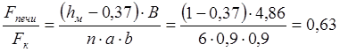 Скорость движения дымовых газов в конце печи с четом уменьшения сечения рабочего пространства печи за счет нагревающихся заготовок, толщиной а=0,37 м, составит: