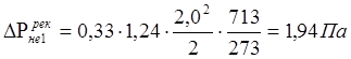 Потери давления в рекуператоре составляют: