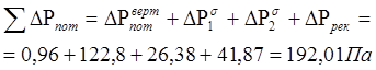Суммарные потери давления на участке от вертикальных каналов до рекуператора составят: