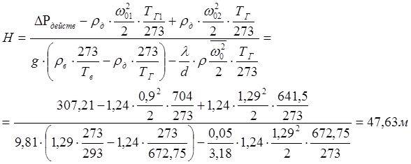 Действительное разряжение, создаваемое трубой должно быть на 50-60%