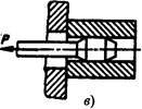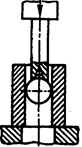 Простейшим инструментом служит шарик, который проталкивается штоком (рис. 2, а). Роль инструмента может выполнять также оправка-дорн (рис. 2, б ), к которому прикладывается сжимающая или растягивающая (рис. 2, в) сила. Заготовки обрабатываются за один или несколько ходов инструмента. Заготовки обрабатывают с малыми либо большими натягами. В первом случае зона пластического деформирования не распространяется на всю толщину детали. Так обрабатывают толстостенные заготовки. Во втором случае зона пластического деформирования охватывает всю деталь. Этот вариант обработки используют для тонкостенных деталей, что существенно повышает их точность. Шарики как инструмент не обеспечивают оптимальных условий деформирования и имеют малую стойкость. Калибрующие оправки выполняют одноэлементными, многоэлементными или сборными. Каждый из элементов-поясков имеет свой размер. Деформирующие элементы изготовляют из твердого сплава или стали, закаленных до высокой твердости. В качестве смазочного материала для сталей и бронз применяют сульфофрезол, для чугунов - керосин. Разработаны специальные смазочные материалы, обеспечивающие жидкостное трение. Они снижают рабочее усилие оборудования, способствуют повышению качества поверхностных слоев, увеличивают точность обработки и стойкость инструмента. Отверстия калибруют на прессах (рис. 2, а, б) или горизонтально-протяжных станках (рис. 2, в). Для правильного взаимного расположения инструмента и заготовки обычно применяют самоустанавливающиеся приспособления с шаровой опорой. Заготовку не закрепляют.