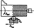 Для повышения износостойкости деталей машин на поверхностях трения целесообразно выдавливать слабозаметные, прилегающие друг к другу канавки. В канавках скапливаются смазочный материал и мелкие частицы, образовавшиеся в процессе изнашивания. Канавки образуются вибронакатыванием. Упрочняющему элементу - шару или алмазу, установленному в резцедержателе токарного станка, помимо движения Ds пр(рис.3) специальным устройством сообщают дополнительные движения алмаза Da с относительно малой амплитудой. Изменяя Dзаг, Dпр , амплитуду и частоту колебаний, можно на обрабатываемой поверхности получить требуемый рисунок. Распространение получили рисунки с непересекающимися канавками, с не полностью пересекающимися и со сливающимися канавками. Возможно также вибронакатывание внутренних и плоских поверхностей. Канавки одновременно упрочняют поверхность. Важнейшей характеристикой такой поверхности является общая площадь канавок (в процентах от номинальной площади обрабатываемой поверхности). Такие отклонения для каждого типа рисунка определяют аналитически.