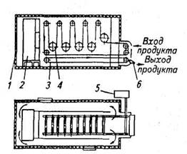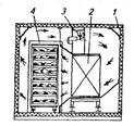 Рис. 4. Скороморозильный аппарат туннельного типа АСМТ:1 — морозильная камера; 2 — испаритель; 3 — вентилятор; 4 —тележка с продуктом.
