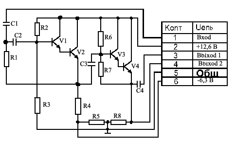 R8 – Резистор 0.2 kОМ 1шт; V1…V4 – Транзистор КТ324В 4шт (СБО.336.031 ТУ)