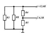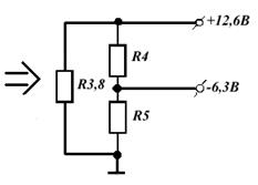 =-6,3B, допустимое относительное отклонение сопротивления от номинального значения для всех резисторов составляет