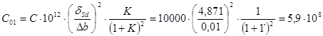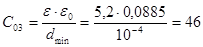 Определим минимальную удельную емкость, приняв значение максимальной толщины диэлектрика: