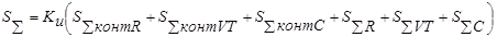 Суммарная (площадь) минимальная площадь платы, необходимая для размещения элементов и компонентов находится по формуле: