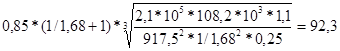 =0.85 – коэффициент, учитывающий неравномерность распределения нагрузок по рабочим поверхностям зубьев,