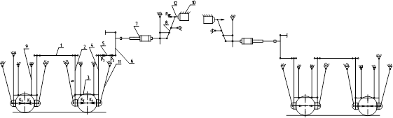 Рис. 1 Схема тормозной рычажной передачи вагона-платформы