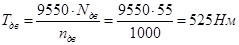 Между электродвигателем и редуктором устанавливаем упругую втулочно–пальцевую муфту. Номинальный момент муфты равен крутящему моменту на приводном валу электродвигателя ![]()