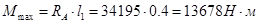 Максимальный изгибающий момент: