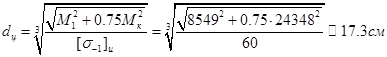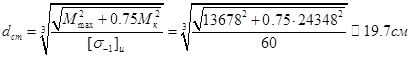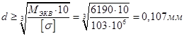 С учетом ослабления сечения шпоночным пазом увеличиваем диаметр вала на 10%