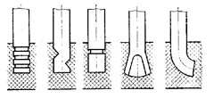 При заформовке практически отсутствует сцепление арматуры с формуемым материалом. Прочность и плотность соединений обеспечивают выбором соответствующих форм погружаемой арматуры в виде кольцевых проточек, впадин, уступов, уширений, загибов (см. рис. 6), увеличивающих поверхности контакта и препятствующих ее выдергиванию.