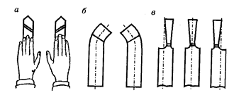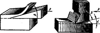 Рис. 1. Схемы действия клина (а) и резца (б)