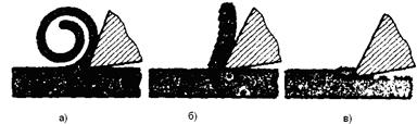 Рисунок 3. Типы стружек: а – сливная, б – скалывания, в – надлома.