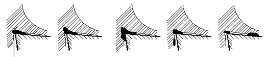 Отрыв частиц нароста происходит неравномерно по длине режущего лезвия, что приводит к мгновенному изменению глубины резания. Эти явления, повторяющиеся периодически, ухудшают качество обработанной поверхности, так как вся она оказывается усеянной неровностями. С увеличением пластичности обрабатываемого металла размеры нароста возрастают. При обработке хрупких материалов, например чугуна, нарост может и не образоваться.