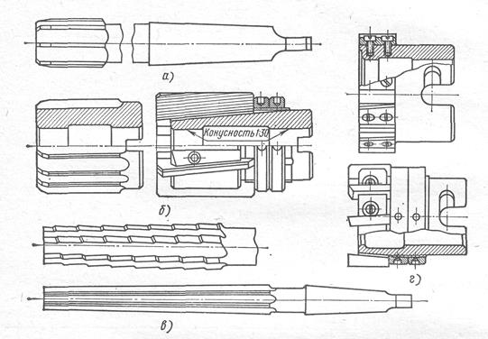 Рисунок 3. Развертки: а — цилиндрическая с коническим хвостовиком, б — насадная, в — коническая, г — специальная для борштанг