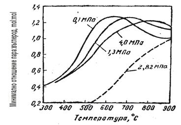 Равновесното съдържание на никелов сулфид при конверсия се снижава с увеличаване на температурата. За различните катализатори пределно допустимата концентрация на H2 Sв газа в зависимост от съдържанието на никел и активността на катализатора е (в мг/м3 ):