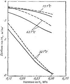 Температура, К Налягане, МРа Съдържание на Н2 , % (мол)