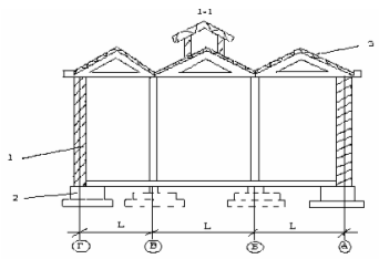 Если верхний этаж многоэтажных промышленных зданий проектируют однопролетным с целью устройства подвесных или мостовых кранов или по технологическим условиям, то для покрытия верхнего этажа применяют те же несущие.
