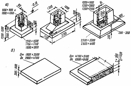 Сплошные фундаменты применяют при неблагоприятных геологических и гидрогеологических условиях площадки строительства. Конструктивно их выполняют так, что они образуют сплошную железобетонную плиту под всем зданием или сооружением толщиной от 500 до 1500 мм.