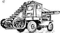 Существующие типы одноковшовых погрузчиков отличаются разнообразием конструктивного исполнения и имеют общее для большинства машин - наличие в передней части ковша. Последний поворачивается вокруг своей оси на угол 50° и поднимается на высоту до 4 м. Сочетание этих движений при одновременном движении машины позволяет наполнять ковш, транспортировать груз и выгружать его на заданной высоте.
