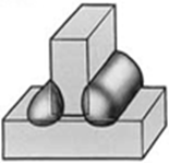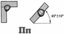 | Тавровое | сварное соединение, в котором торец одного элемента примыкает под углом и приварен к боковой поверхности другого элемента. | ![]() |