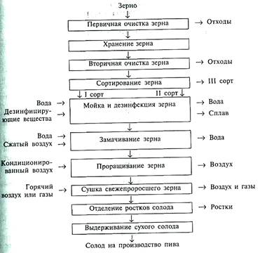 На рисунке 1 изображена принципиальная схема получения ячменного солода.