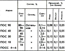 * Припои, содержащие менее 50% Sn, относятся к сплавам свинца