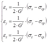 в которых содержатся ещё семь неизвестных – три линейных деформации, три деформации сдвига и модуль пластичности второго рода. В результате получаем 13 уравнений с 13 неизвестными.