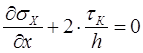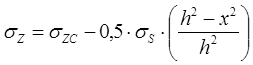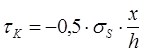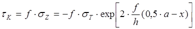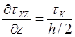 Касательное напряжение τxz, переменное по ширине и высоте, на контактной поверхности равно τк - касательному напряжению, обусловленному
