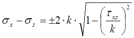 точное при указанных выше условиях постоянства или независимости τк от σx и σz.