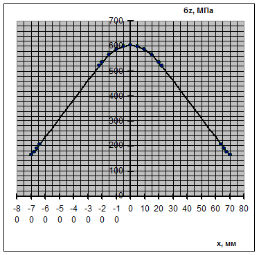 Рисунок 7. Эпюра распределения контактных нормальных напряжений