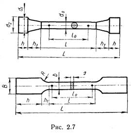 На рис. 2.7 показаны применяемые образцы для испытаний на растяжение. Нормальные цилиндрические образцы имеют диаметр 20 мм и начальную расчетную длину 10 = 10 d0 (длинные образцы) или /0 =5 d0 (короткие образцы). Расчетная длина /0 равна расстоянию между рисками, нанесенными на цилиндрической части образца.