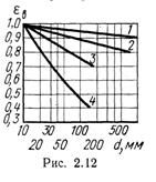 На рис. 2.12 представлены кривые зависимости εв от диаметра образца для следующих материалов: высокоуглеродистая и марганцовистая стали — /, легированная сталь — 2, модифицированный чугун — 3, серый чугун — 4.