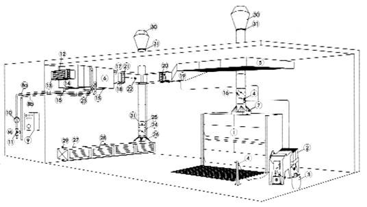 1. Покрасочная кабина с сухими или водяными фильтрами.
