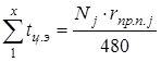 – суммарная занятость поточной линии j-м наименованием детали (изделия) по всем xпартиям в валовом периоде, смен;