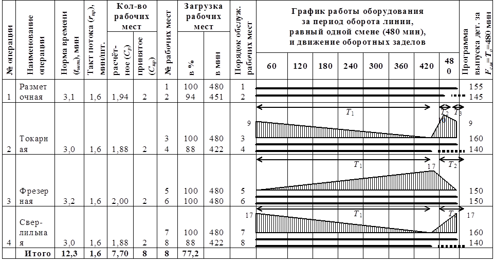 . При периоде оборота линии, равном одной смене,