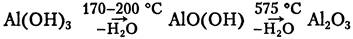 При нагревании ступенчато разлагается, образуя промежуточный продукт — метагидроксид AlO(OH):