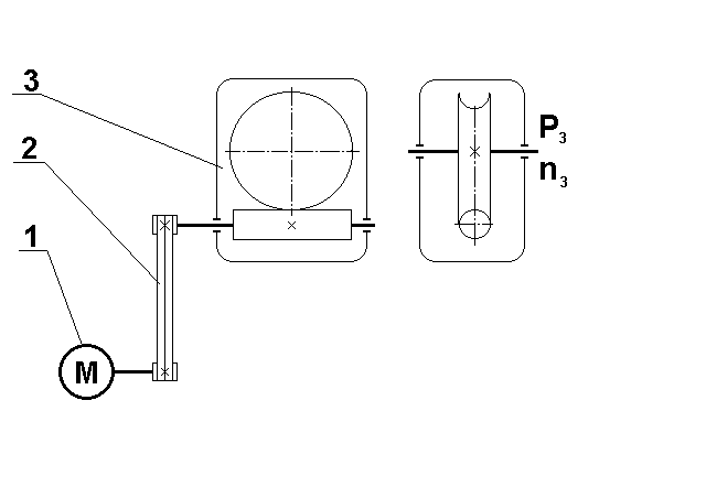 Раздел 2 Расчетная часть 2.1 Выбор электродвигателя, кинематический и силовой расчет Исходные данные: Частота вращения вала барабана:30об/мин Мощность на валу барабана:Р=4.5 кВт Количество передаточных звеньев привода: 2 Количество пар подшипников: 2 Количество валов: 3 Коэффициент учитывающий потери в одной паре подшипников:0.99 Параметры 1-го вала Параметры цилиндрического редуктора Максимальное передаточное число звена Umax = 4 Минимальное передаточное число звена Umin = 2 К.П.Д. звена 0.7 Параметры 2-го вала Параметры червячной передачи. Umax =40 Umin =8 К.П.Д.=0.7 Требуемая мощность электродвигателя: Выбираем асинхронный 132M2 у которого мощность 3 кВт Диапазоны частот вращения вала электродвигателя 480-4800об/мин Величина скольжения: 0.023 Фактическая частота вращения Действительное передаточное число:97.6999 Разбиваем действительное передаточное число между звеньями и получаем Uред = 30 , Uрем=3.26 Вал 1 Передаточное число 1 К.П.Д. 1 Число пар подшипников на валу-0 Частота вращения вала 2931 об/мин Мощность на валу 9.37013912 кВт Вращающий момент на валу 30.54371261 Н*м Вал 2 Передаточное число 3.26 К.П.Д. 0.95 Число пар подшипников на валу1 Частота вращения вала 900 об/мин Мощность на валу 8.81261539 кВт Вращающий момент на валу 93.55217743 Н*м Вал3 Передаточное число 30 К.П.Д. 0.7 Число пар подшипников на валу 1 Частота вращения вала 30.089об/мин Мощность на валу 4.5 кВт Вращающий момент на валу 1944.9498Н*м | ||||||