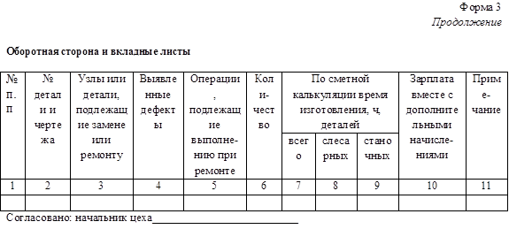Ежемесячно за 4 дня до начала месяца каждой бригаде выдают план ремонта. В приложении (форма 2) приведен примерный годовой график планово-предупредительного ремонта оборудования.