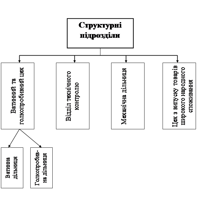 Щодо складу цехів та служб, то вони реалізують виробничий процес виготовлення продукції. Форми їх взаємозв’язків покладені в основу виробничої структури ЗАТ „Тетерів”. Види структурних підрозділів та цехів зображені в Таблиці 2.