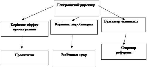 Так як технологічний процес виготовлення валінкового взуття включає велику кількість операцій, то виникає необхідність розподілити задачі управління між окремими виконавцями. Склад, взаємозв’язки, підпорядкованість організаційних одиниць утворюють організаційну структуру управління.