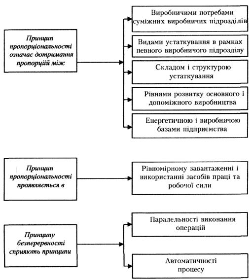 Недотримання цього принципу приводить до появи "вузького місця", а підвищення ступеня пропорціональності окремих процесів сприяє безперервному протіканню виробничого процесу.