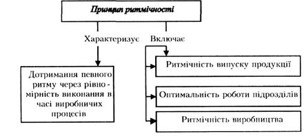 Ритмічність - принцип реалізації процесів, який характеризує рівномірність їх виконання а часі, тобто вимагає планомірних повторів ритмічності у випуску готової продукції і в роботі всіх підрозділів підприємства. При дотриманні цього принципу в рівні проміжки часу випускається однакова або рівномірно наростаюча кількість продукції, регулярно повторюються операції на всіх робочих місцях.