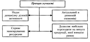 * застосування гнучких форм і методів організації виробництва, здатних забезпечувати прискорений перехід на виготовлення нових конкурентоспроможних виробів, які користуються підвищеним попитом на ринку;