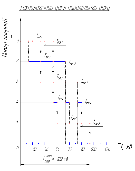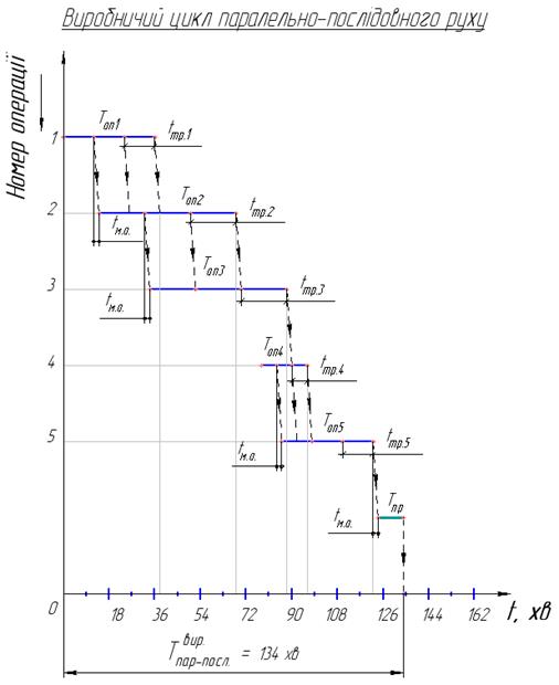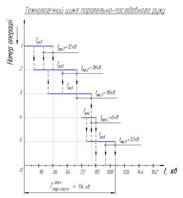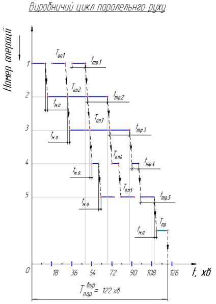 де Тц пар - - тривалість виробничого циклу при паралельному поєднанні операцій, год.; Тц пос - тривалість виробничого циклу при послідовному поєднанні операцій, год.
